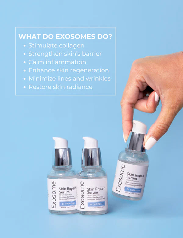 • Plant Based Exosomes - benefit the skin by delivering growth factors, proteins, and antioxidants that boost collagen production, reduce inflammation, and promote skin repair. They help improve skin hydration, elasticity, and overall texture, making the skin look healthier and more youthful.